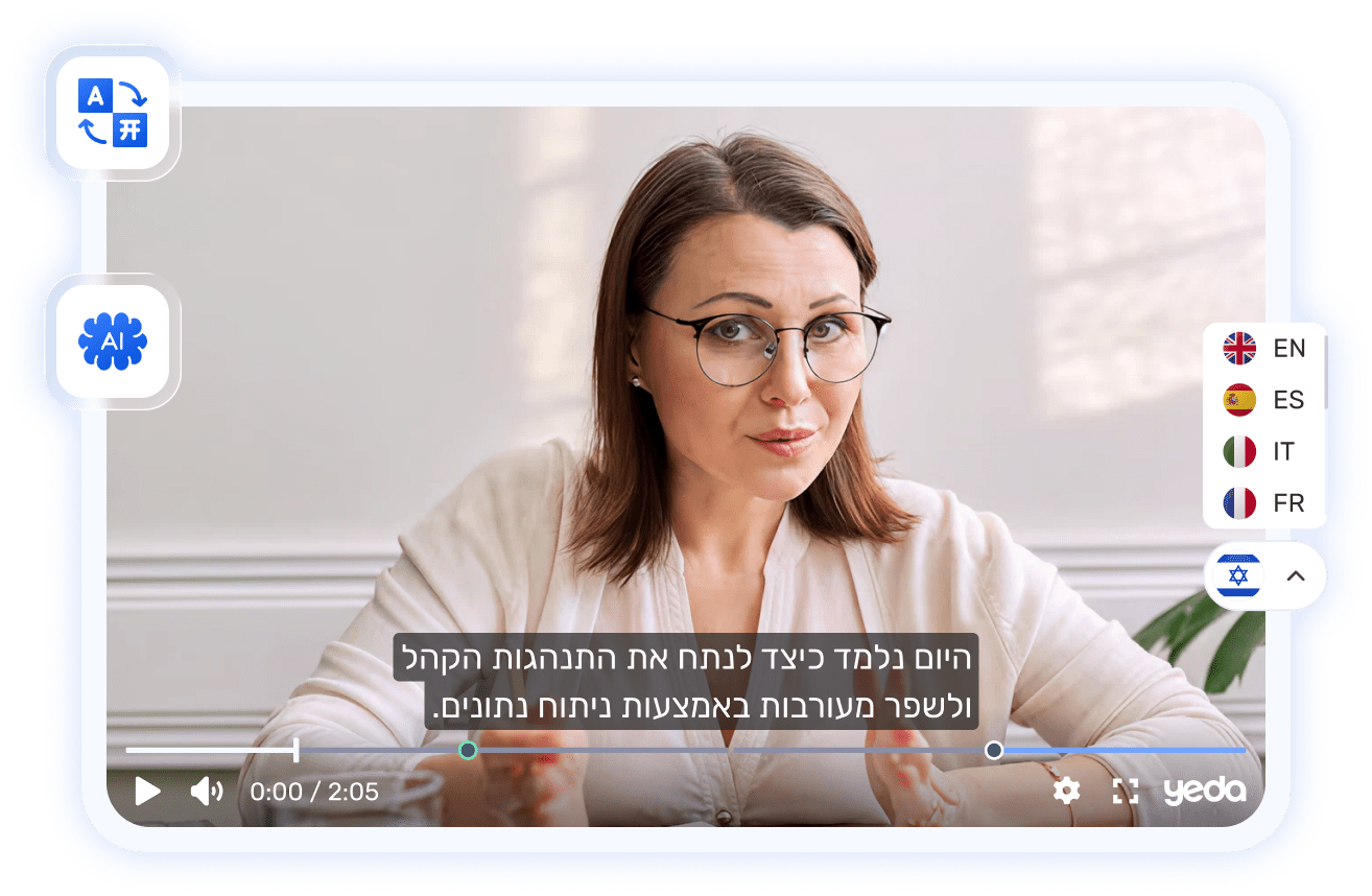 תרגום, הנגשה והתאמה תרבותית של התכנים באמצעות כלי AI, כדי שיהפכו רלוונטיים לכל קהל יעד בארץ ובעולם.